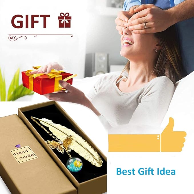 - Uniquely Designed - Vintage-style metal feather bookmark, featuring a realistic 3D metal butterfly pendant and eternal dried flower glass bead charm. Motivates you to read and is a cheerful topic-starter for all ages and tastes.