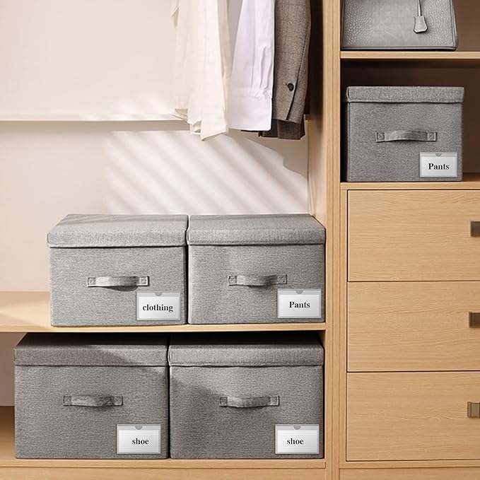 - 【Material】Labels holder for storage bins is made of PVC material, which is transparent and clear, not easy to deform, and not easy to turn yellow or crack after long-term use. But please try to avoid high temperature environment.