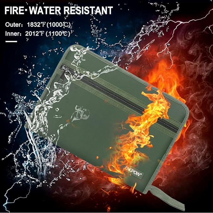 • DOUBLE LAYERS PROTECTION: This newly designed file folder uses different materials than other folder.Double Layered design, high quality Non-itchy Liquid Silicone Coated Fireproof Fiberglass which feels very comfortable to touch,this bag is FIRE and WATER RESISTANT.Fireproof file folders can fully protect your important documents, paper,birth certificate, passport.It will be an ideal great Christmas gift for your family or friends.