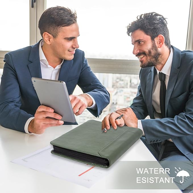 Free Engraved Name, 3 Ring Binder Padfolio, Vegan Leather Portfolio with a4 Clipboard, 3 Ring Padfolio A4 Organizer, Resume Planner, Green, Gift for Men/Women,Customized