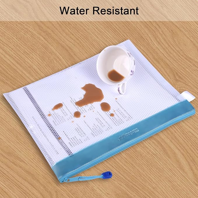 Zipper Pouch, Wisdompro 4 Packs Durable Letter Size Waterproof Mesh File Bag, Document Organizer - Blue/Purple