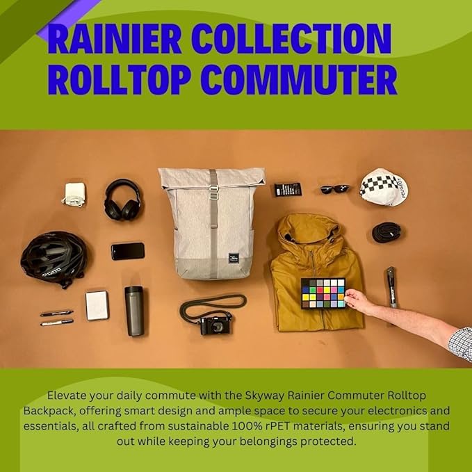 Skyway Luggage Rainier Rolltop Commuter Casual Daypack for Work or Hiking, Eco-Friendly, Made of 100% rPET Travel Laptop Bag for Women & Men, 20L, Zion Gray