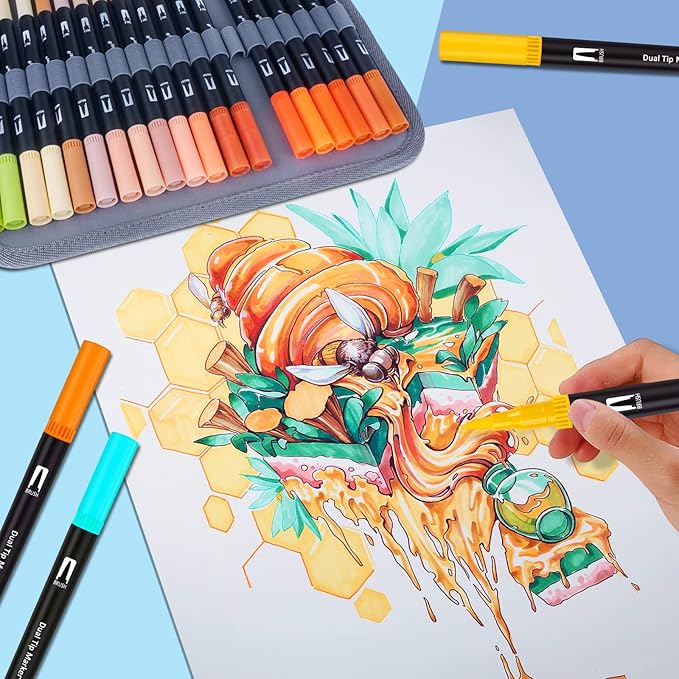 Markers for Adult Coloring Book, 120 Colors Art Markers Set Dual Tip Brush Pen, Coloring Markers Fine Point Kids Artist Drawing Paintings Diaries Journaling Art projects Art Supplies with Case