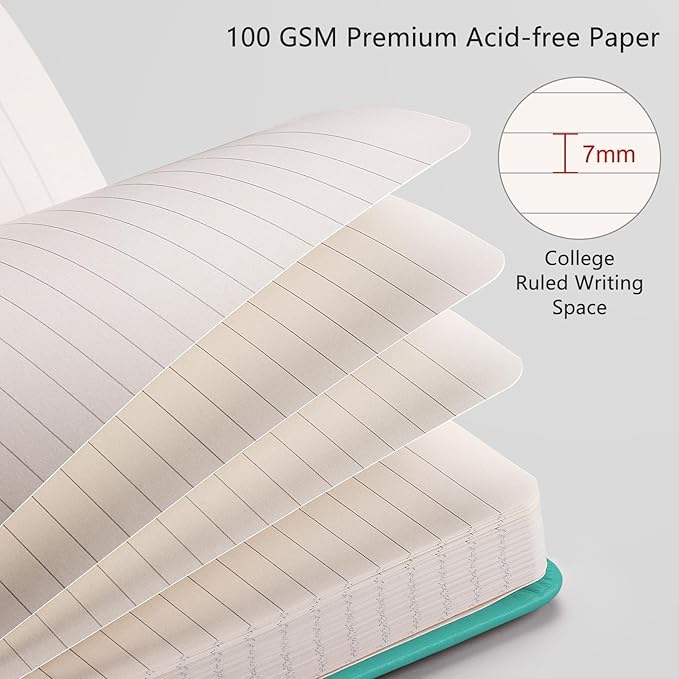 - RETTACY NOTEBOOK JOURNAL: RETTACY Notebook Journal comes in a A5 (5.7'' × 8.3') size, 160 Sheets/320 Numbered Pages, waterproof and smooth Leather Hardcover, 7 mm college ruled writing space, 100 GSM Acid-free Paper, Inner Pocket, Sticky Notes, 2 Ribbon Bookmarks, Elastic Closure Band