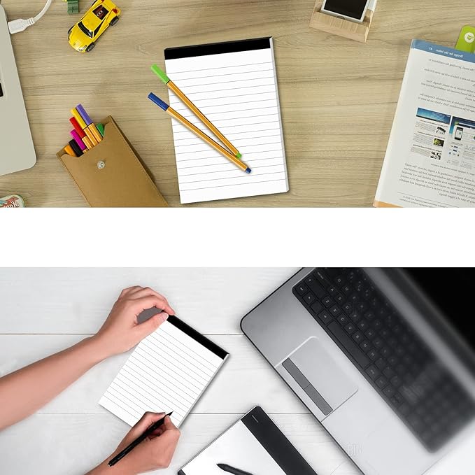 - College Ruled Notepads: Each page of the notepad comes with a college line spacing of 9⁄ 32 inches, making handwriting and notes easy to read. The well-made cardboard backing provides user-friendly writing support. Students can be easily carried anywhere to write down their thoughts and creative ideas anytime, anywhere. Also great for offices, business, and personal use.
