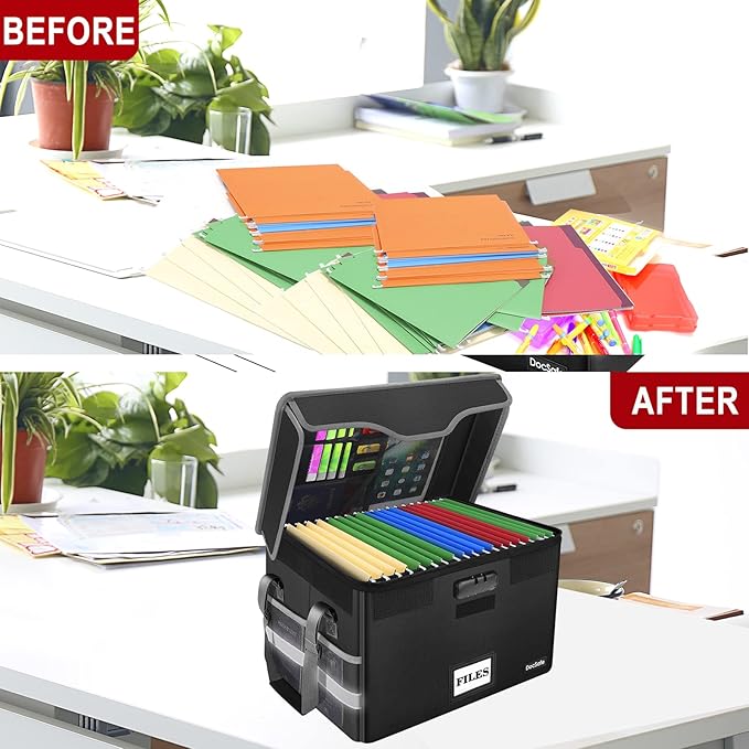 - Large Capacity: 16" x 12.5" x 10.5".Fireproof file cabinet not only can fits both letter and legal size files fitting your filing system, but also can protect your important documents,books,Cards,CDs, DVDs,USBs,albums,passports, social security cards,birth certificates and other valuables because we have designed mesh pockets and tab inserts on the lining of the lid and on the sides of the box.