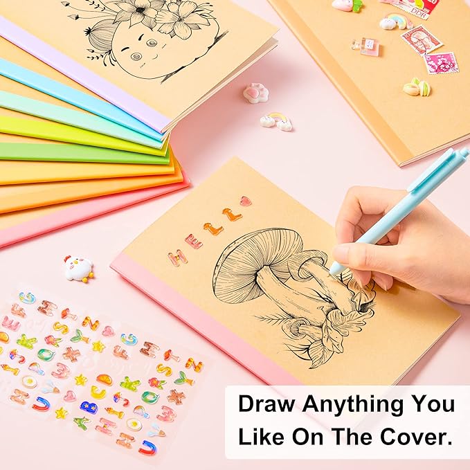 - Feela Composition Kraft Notebooks contain 16 kraft cover notebooks with rainbow spines of 8 different pastel colors. There are 2 notebooks of the same color. Each of them measures 8.3” x 5.5”, which is easy to carry in bag and easily held by students.