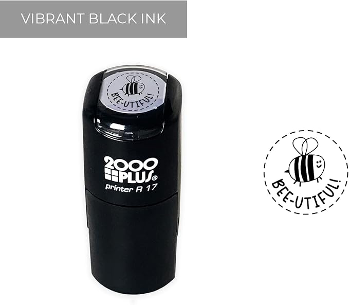 • Includes: One small round self-inking honey bee themed black ink stamp.