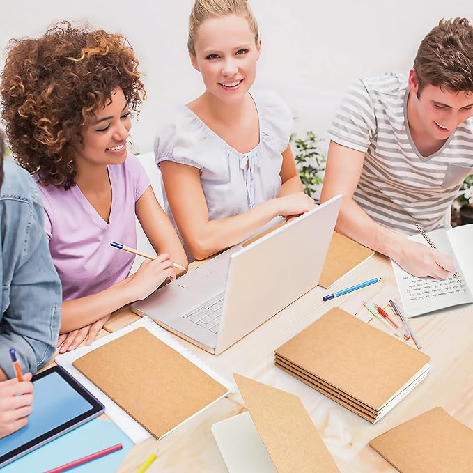 - Feela Kraft Notebooks contains 90 lined kraft cover notebooks. Each of them measures 8.3” x 5.5”, which is perfect to carry in bag and easily held by hand.