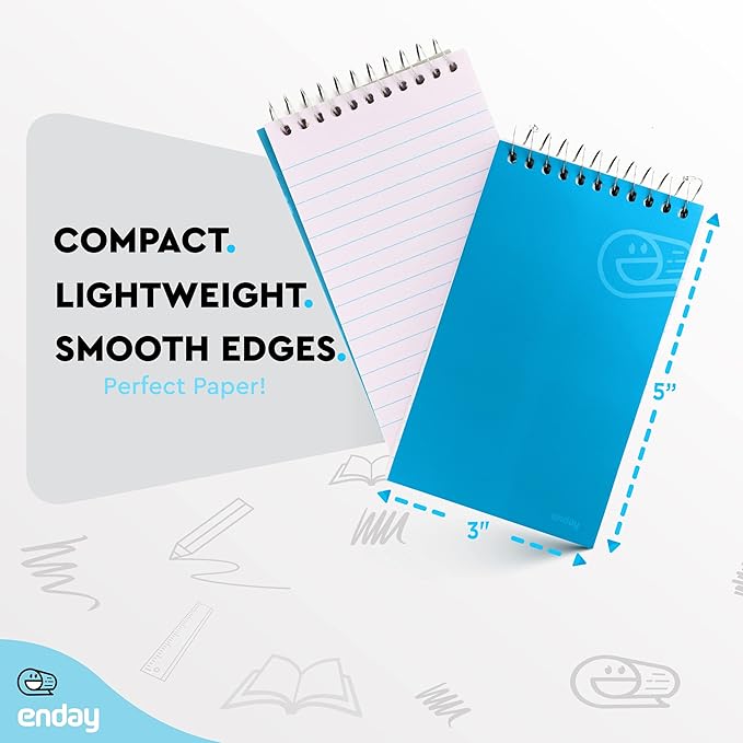 Enday Pocket Notebook, Small Notebooks Top Bound Small Spiral Notebooks, Memo Pad for Home Office Accessories, 75 Sheets, 3 x 5 Mini Notepad in Pink, Purple, Green, Blue, Red, Grey (12 Pack)