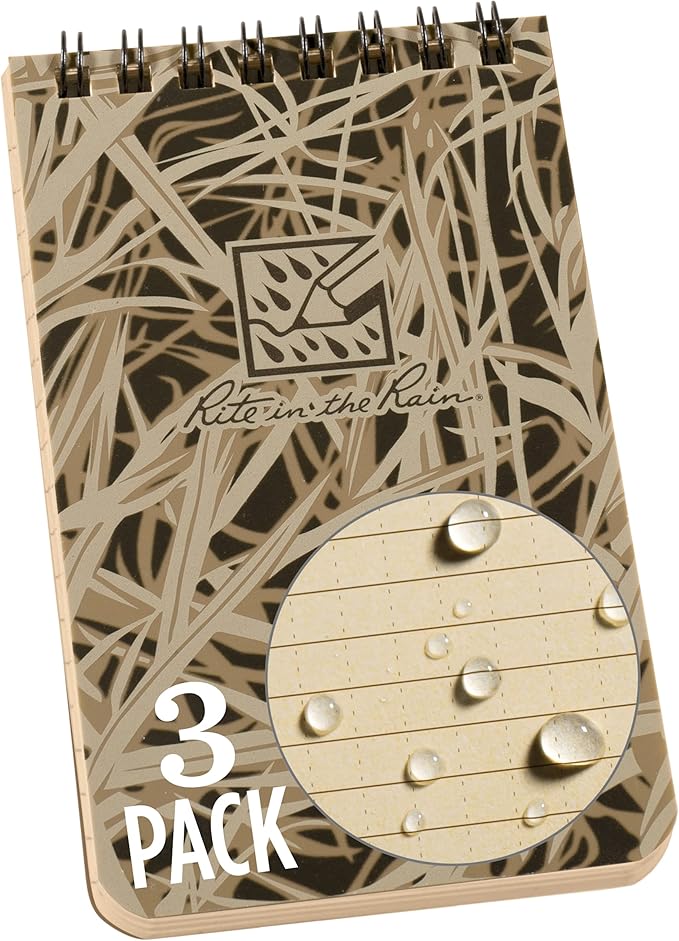 Rite in the Rain Weatherproof Top Spiral Notebook, 3” x 5”, Classic Heritage Grass Camo Cover, Universal Pattern, 3 Pack (No. RG935T-3)