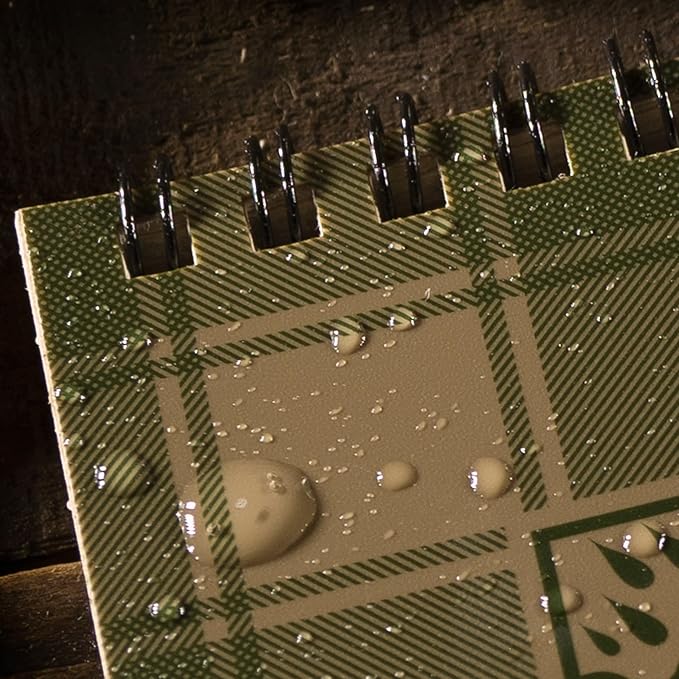 - WEATHERPROOF PAPER: 100 pages / 50 sheets per pocket notepad. All-weather paper won’t turn to mush when wet and will repel water, sweat, grease, mud, and even survive the accidental laundry mishap or camping adventure. Make sure your pocket notebook stays RIGHT in the Rain.