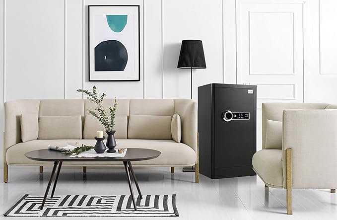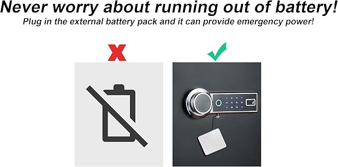 - 【BETTER CONFIGURATION】: As soon as you open the security box, the light will light up and go out automatically after 30 seconds. The inside of the safe is covered with leather to prevent wear and tear of valuables. The safe box also has an emergency external battery pack. When the internal battery is exhausted, you can plug it in to provide emergency power.