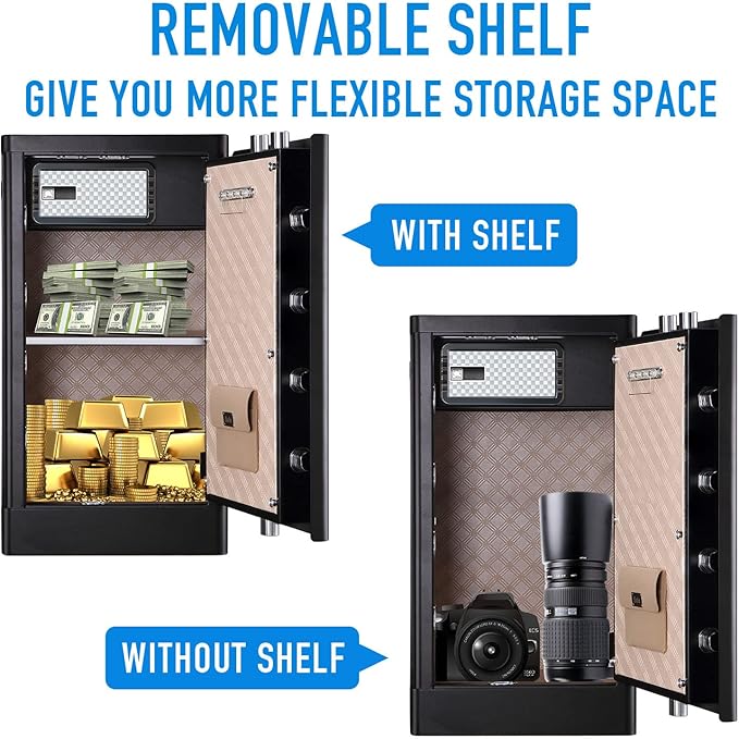 - 【STRONGER MATERIAL】: TENAMIC biometric safe box is made of the better solid steel, the surface has anti-corrosion and anti-wear powder coating. This security safe has a pry-resistant steel door and concealed pry-resistant hinges to offer you complete peace of mind. If necessary, you can fix it on the wall. No one can take away the contents of the safe without your permission. The new version of the safe greatly strengthens the packaging, and equips with foot pads.