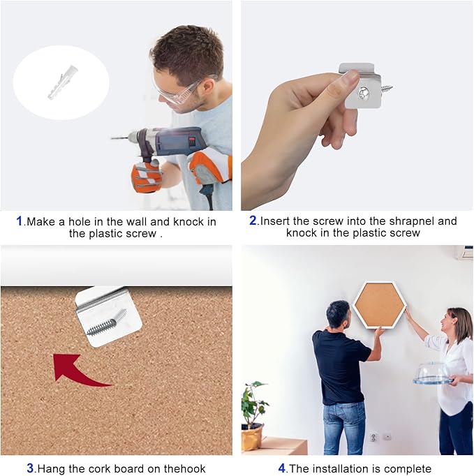 - What You Get: Best choice for gifts, including 4 packs of cork boards,20 natural wood clips and 20 color pins, 8 x Screw; 4 x Hook; 8 x Plastic expansion screw ,in the process of receiving or using the product, please feel free to contact us whenever you have any questions.