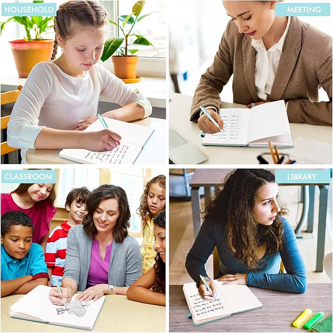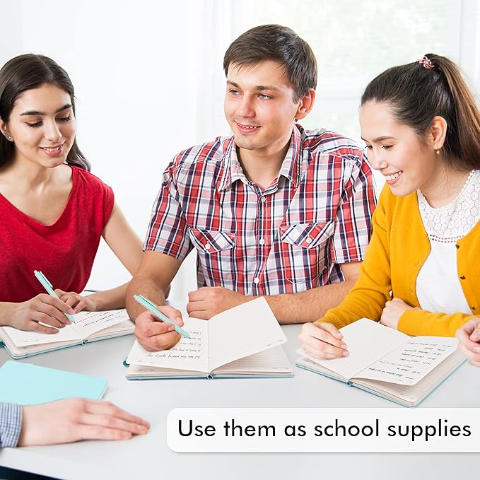 - Feela 3 Pack Classic Ruled Notebooks contains 3 sky blue ruled sturdy cover notebooks and 3 Black Retractable Pens. Each of the notebooks measures 8.3” x 5.1”, which is perfect to carry and easily held by young girls and boys. These black cute pens are customized to be placed in the pen holder, which is pretty convenient.