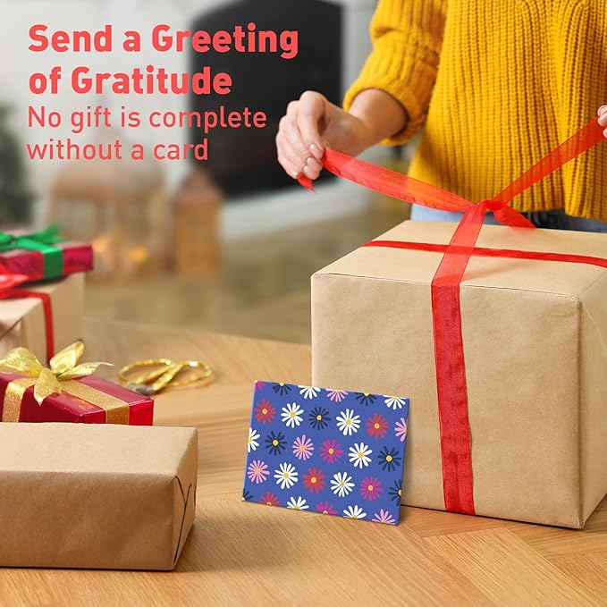 - Express Yourself with Personality — This blank card pack comes in 24 vibrant designs. Coordinate your floral note cards with a choice of 4 colored envelopes in blue, mint, pink or yellow. Craft a personalized message for every recipient