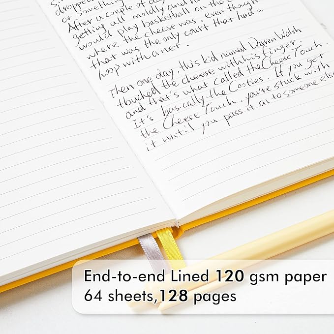 - These classic ruled notebooks are all blank inside with 128 lined pages (64 sheets), which would be convenient for daily usage. The hard cover journal has a water-resistant faux leather cover, round corners and bookmarks, which is designed to lay and open flat. There’s a “date/page” column on the top of every page. You can use it as a reminder to let you remember those important dates and find the page you want in a very short time.