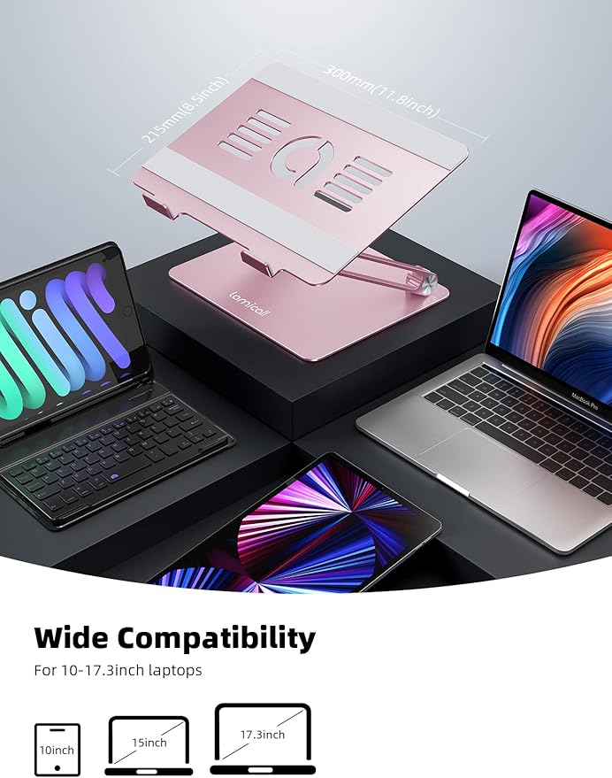 - Wide Compatibility: The laptop stand for desk is compatible with all laptops from 10" up to 17.3", such as Mac MacBook Pro 16 14 inch 2021 Air 12 13 15 inch 2018 2019 2020 Microsoft Surface Google Pixelbook Dell XPS HP Acer Chromebook and more 11inch - 17.3 inch laptop notebooks. Christmas Gifts Thanksgiving Present Regalos de Navidad.
