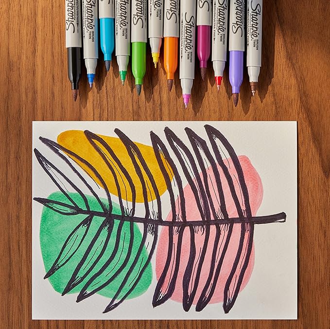 Sharpie Brush Twin Permanent Markers, Brush Tip Marker and Ultra Fine Tip Marker, Assorted, 12 Count