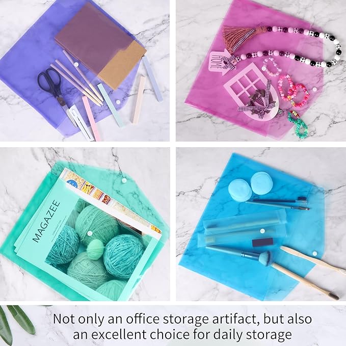 - Upgraded Quality: Our sturdy PP plastic envelope folders are waterproof and abrasion resistant. Each plastic folders is 33.3 x 23.6 cm / 13.1 x 9.3 inches.