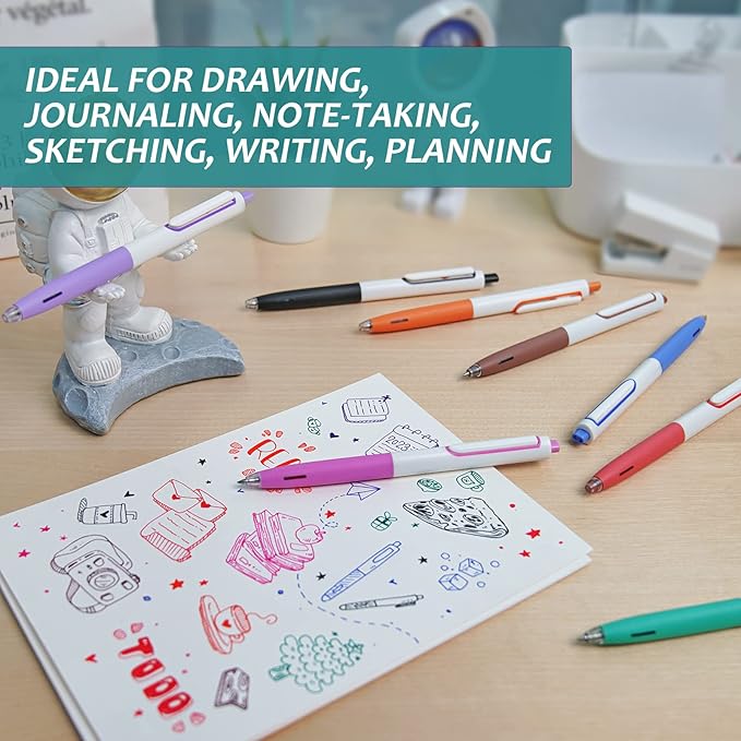 WRITECH Retractable Gel Ink Pens: Multicolor 0.5mm Fine Point Pen No Smear & Bleed for Journaling Sketching Drawing Notetaking Extra Smooth Writing Silent Click Pen Set Up-Gel 8ct