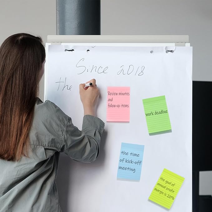 - <br>Package: Comes with 24 packs 4" x 6" lined sticky notes,6 light assorted color, each color for 4 packs, 50 sheets/pad. 1200 sheets in total. Enough quantity for daily use.