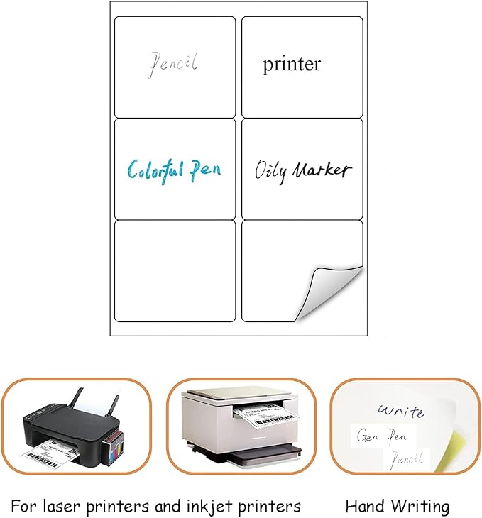 - Easy to Peel & White Matte : High quality blank white labels stickers provide clear and easy-to-read printing, you will find labels produces sharp text and rich colors, not fade. The matte surface allows you to easily distinguish the front and back. Easy to peel off design, just bend the corner of the paper slightly to peel off the label, and then stick the label on the surface you want to mark.