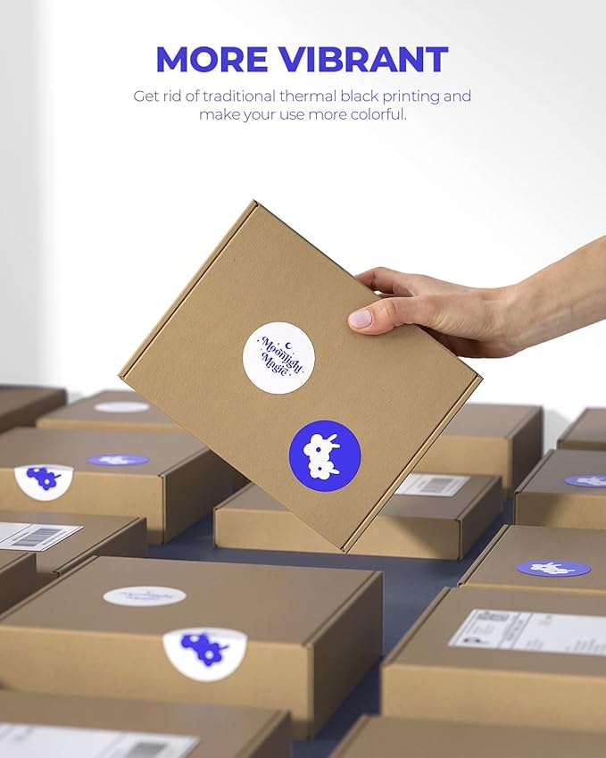 MUNBYN 2 Inch Color Printing Thermal Label Stickers, Multi-Purpose Blue Thermal Stickers for Small Business, 750 Sheets/1 Roll