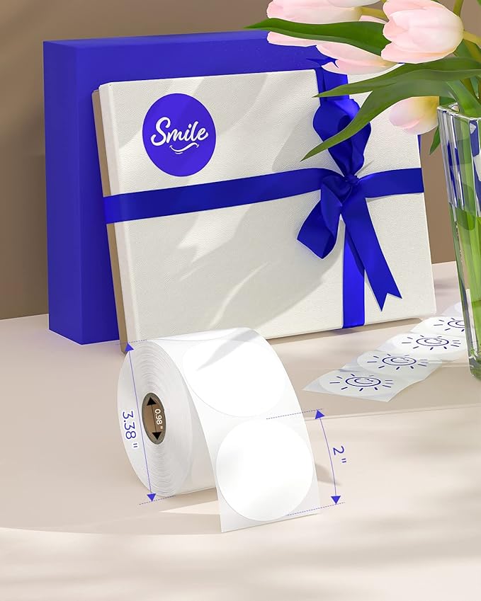- Munbyn Generic Circle Series Labels (GR): Round thermal labels with the size: 2" circle (750 labels/roll, 1 roll, white), paper tube diameter: 0.98"(25mm), paper roll diameter:3.38"(86mm), no ink toner or ribbons are needed!
