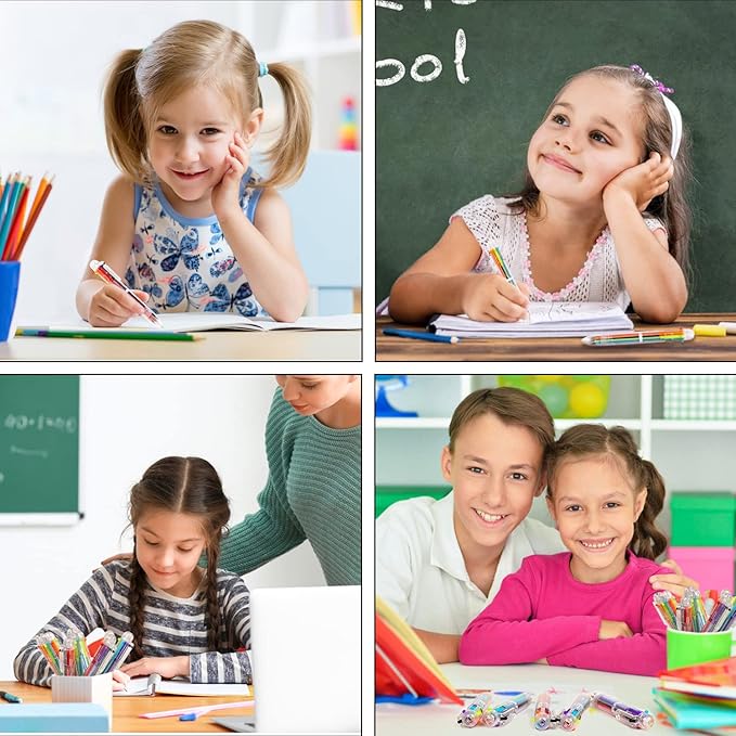 • 8 Colorful Ballpoint Pens: Contains 8 multicolor ballpoint pens in black, blue, red, orange, green, purple and clear barrel