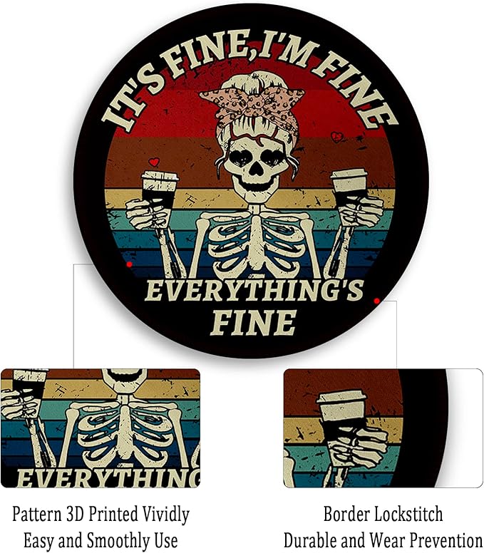 - Novelty Mouse Pad: This skeleton coffee mouse pad is designed with funny arts: It`s Fine I`m Fine, Everything is fine. The cute and funny mousepad will always bring more happiness and fun to your life. You will get tons of comments on it