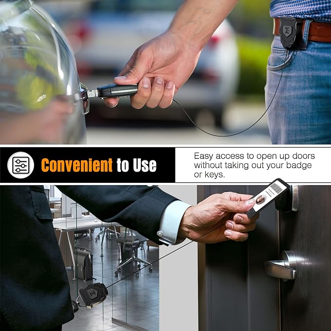 - 【Premium Quality】 Our custom molded ABS casing is lightweight, scratch resistant and shock absorbent. The cord of this heavy duty badge reel is made with the dyneema fibers that have more than 10 times the tensile strength of steel. The 31” cord retractor is great for carrying your edc gear such as keys, work IDs, USBs, phone cases, and even small tools. Our retractable badge reel can hold up to 11 ounces. This means you can connect multiple items and always have them within reach.
