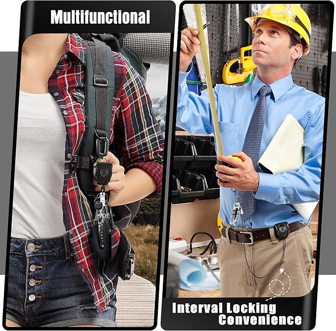 - 【Interval Locking Mechanism】 While many badge holder reels are retractable, most do not have any type of locking mechanism for convenience. This means you are always pulling on the cord and once you release it, the cord automatically retracts. Our retractable badge holder is built with a special interval locking mechanism that allows you to extend your cord and it locks at convenient lengths. This is great when you need to use your phone or other accessories for extended periods of time.