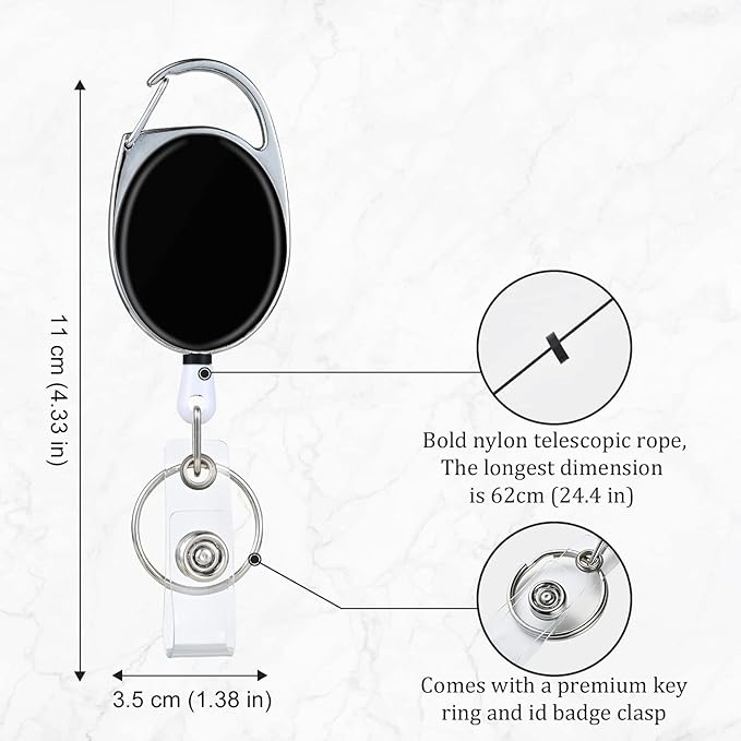 - 【Practical performance】The maximum stretch length of the retractable badge clip can reach 24.4 inches (62cm), making it easier and more convenient for you to carry and use ID cards, access control cards, pass cards, student cards, work permits and other documents, reducing your Pocket, backpack space use.