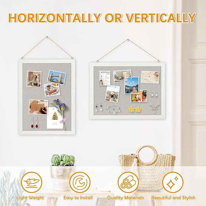 - [Classical Design]: Featured with gray linen surface and vintage white wooden frame, the linen board is more fashionable than normal cork board. Rural and classical style suits most houses and offices. Decorates your home or office perfectly.