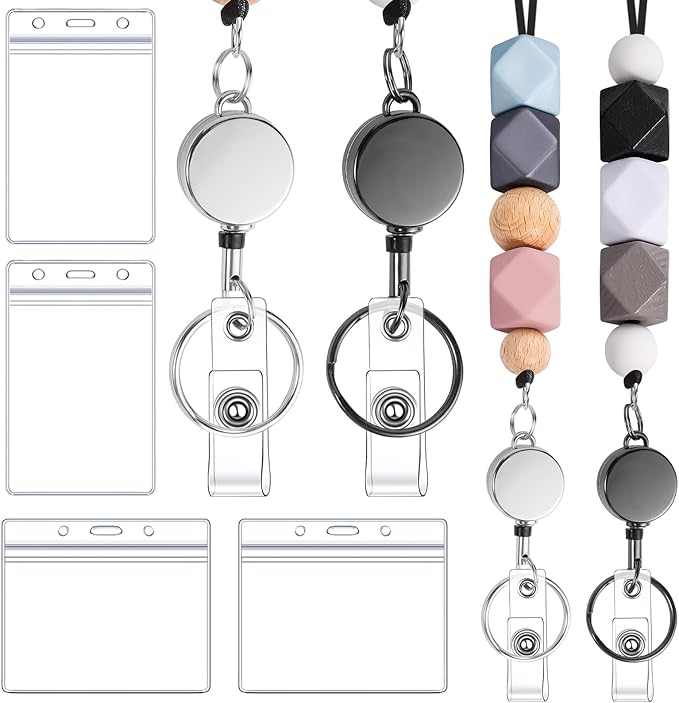 6 in 2 Set Retractable Lanyard for ID Badges, Teacher Lanyard with ID Holder Beaded Lanyards for Women Teacher Appreciation Gifts Office Gift for Coworkers