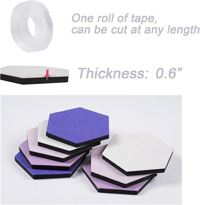 - 1. Size and Material - The size of the bulletin board is 7.0 × 6.1 inches. Each hexagon board is 0.6 inches thick, The pin won’t poke through the board. The surface of the felt board is covered with felt and the back is made of EVA, sturdy and durable.