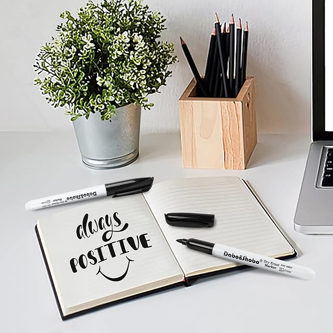 Dabo&Shobo Dry Erase Markers 24 Pack, Low Odor Black Whiteboard Markers, Chisel Tip, Perfect for Writing on Whiteboard Mirrors Glass In School, Office&Home…