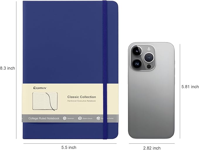 Comix 6 Pack Lined Journal Notebooks for Work, 240 Pages, 5.5"x8.3", Navy Blue, Hardcover, A5 Medium College Ruled, Journaling Notebooks for Notes-Taking, Fits for Office School Home