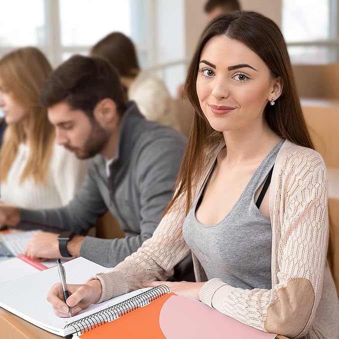 - Durable Plastic Covers: Multiple subject notebooks with poly cover front and back. Easy to clean, Moisture resistant, Rounded corners, Embossed edge. Spiral 5 subject notebook with inside pocket.