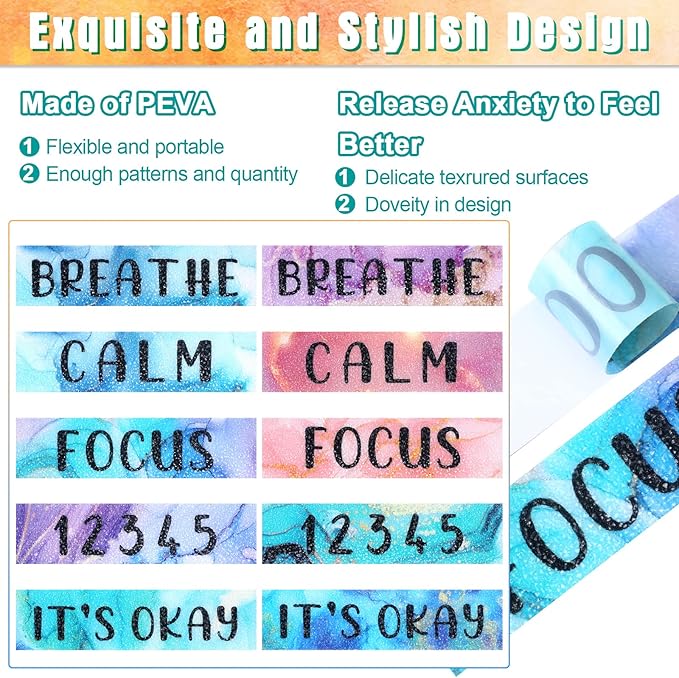 - Adhesive Design: our sensory texture strip stickers are equipped with adhesive glue on the back; You can peel the film on the back and attach them directly to your phone, computer, desktop, pen case, and other places where you can reach it