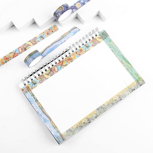 - 3. MUTED VAN GOGH DESIGNS: This pack of washi tapes feature your favorite iconic Van Gogh painting in beautiful watercolor designs! Starry Night, Sunflower, Wheat Field, Irises and more! The tonal range - from yellow through navy blue to dark green colors.