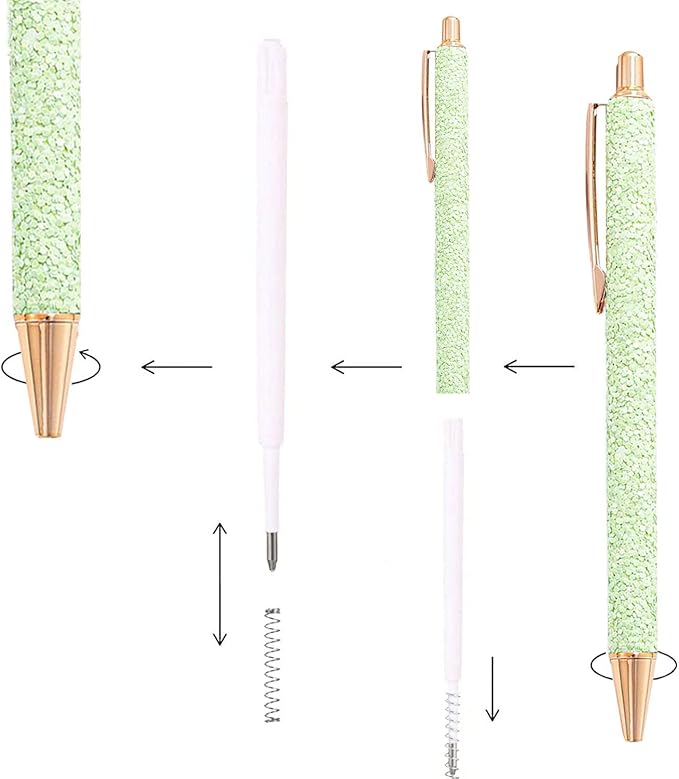 - Quality Material: these pretty pens are are made of stainless steel tubes and metal clips, they are sturdy and reliable, designed with glitter sequins, very firm, enough for you to use for a long time