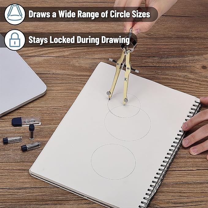 - The classic, simple design of the gold compass allows for easy operation and control, with the ability to adjust the circle size swiftly.