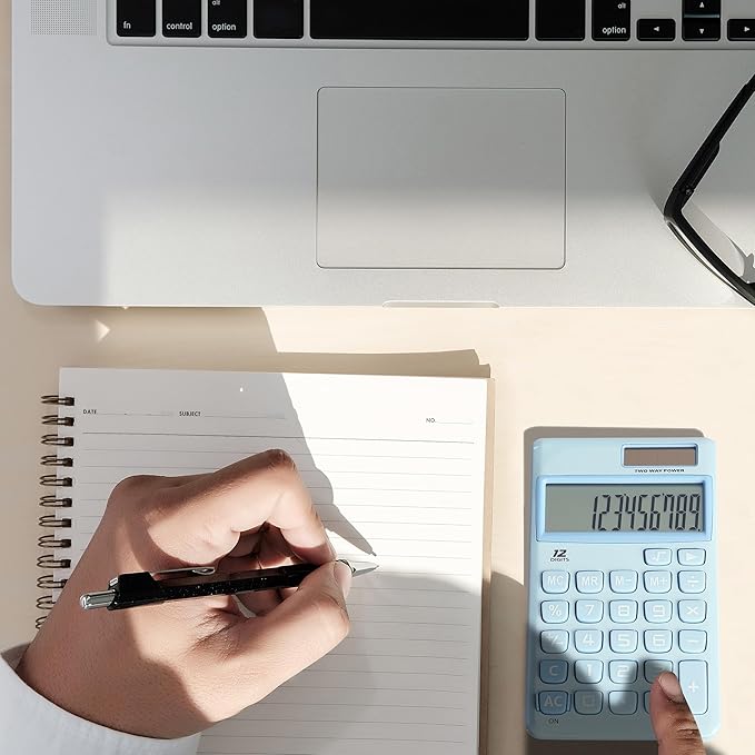 Mr. Pen- Standard Function Calculator, 12 Digits, Small Calculator, Light Blue Solar Calculator, Pocket Calculator, Simple Calculator, Basic Office Calculators, Solar Handheld Calculator
