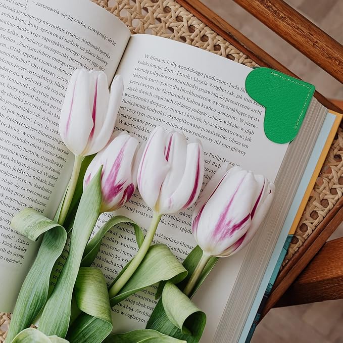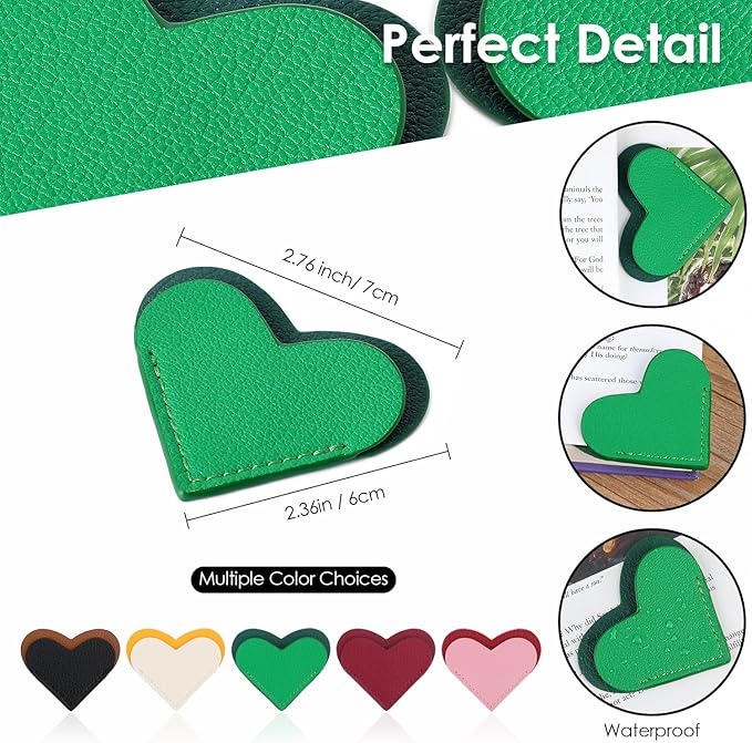 - 【3 Pack Bookmarks】Leather green heart leather bookmarks. Eye-catching bookmarks can be used to mark different page contents or books. The original design of bookmarks are made of vegan leather. You can share this beautiful love with your family, friends and lover. Size: 2"*2"*2.7" (5*5*7cm). Plenty of quantity and color to meet your daily use.