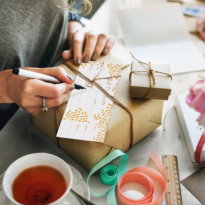 Sinmoe 50 Sets Gift Certificate for Business with 50 Pcs Envelopes Blank Gift Certificate Cards with Name and Address Rustic for Beauty Salon Restaurants Birthday(4.72 x 2.36 Inch, Branch Style)