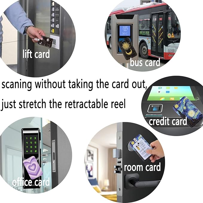 - Scan without removing the card: Our card holder can scan without taking the card out and the badge holder retractable reel can stretched to 28.8 IN
