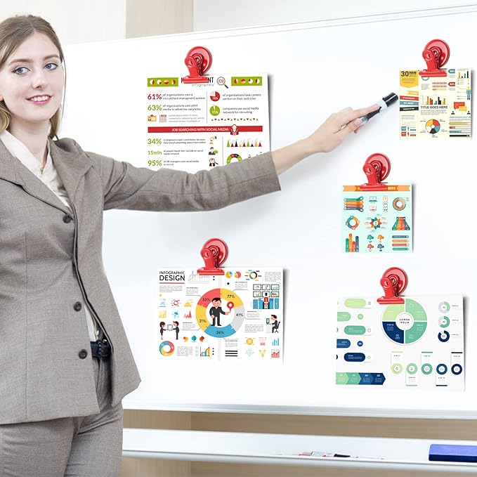 - 【Strong Magnetism】Magnet clips heavy duty can hold over 25 sheets of A4 paper on a metal surface without sliding.